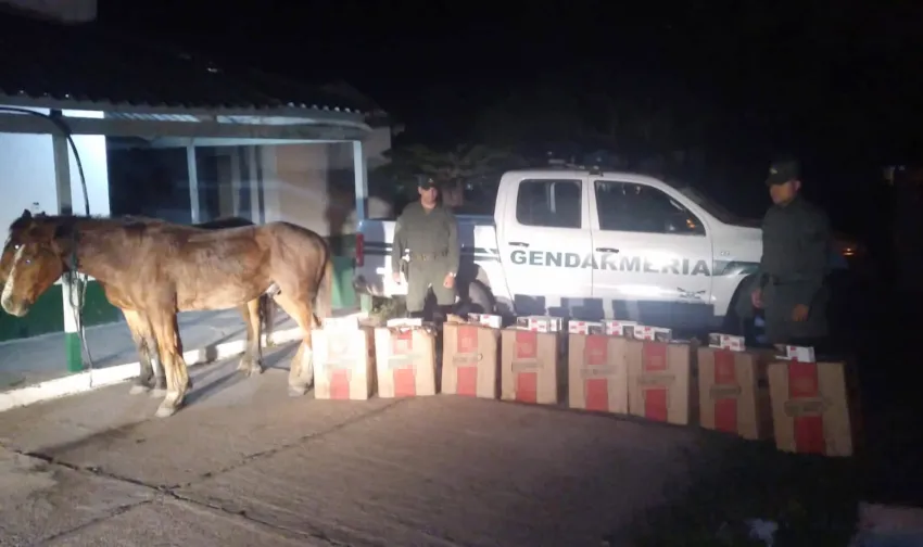 Dos personas estaban cargando la mercancía sobre los caballos, al notar la presencia del personal de la fuerza se dieron a la fuga nadando por el arroyo del Riacho Quiá. Los cigarrillos de origen extranjero están valuados en 1.206.400 pesos y no contaban con la documentación correspondiente.