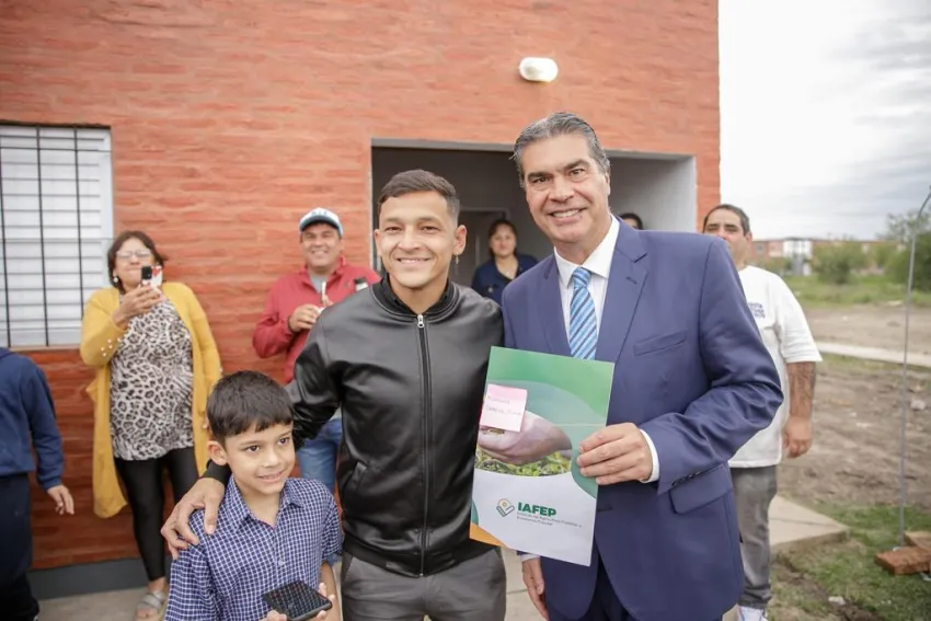 El gobernador Jorge Capitanich entregó este lunes cinco viviendas sociales en Resistencia, construidas en este caso por el movimiento MTD Autoconvocados con apoyo del Instituto de Agricultura Familiar y Economía Popular (IAFEP). Ubicadas en el ex campo de Tiro, "son parte de un plan de 11 unidades que se ejecutan en el lugar y que a su vez forman parte de un plan de 5.000 soluciones habitacionales (construidas o por hacerse) en toda la provincia", indicaron desde la prensa gubernamental.