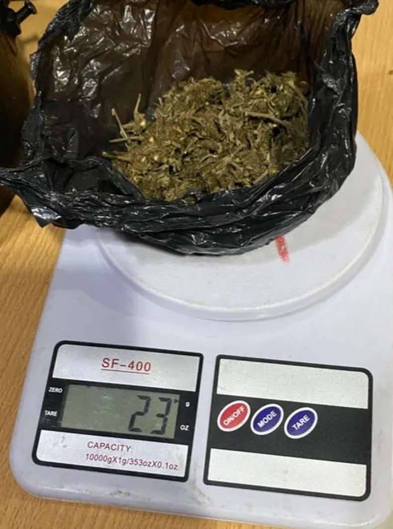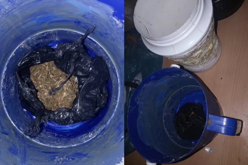 Sin embargo, el personal policial procedió a la inspección de los elementos y halló dos envoltorios de polietileno escondidos en el interior de un termolar. Uno de ellos contenía 23 gramos de marihuana, y el otro 30 pastillas azules de "Clonazepam".