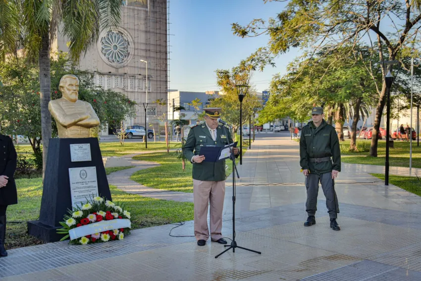 El acto tuvo lugar en el busto del general Martín Miguel de Güemes que se encuentra en plaza San Martín, y contó con la presencia del presidente del Concejo Deliberante, Pedro Egea, el subsecretario de Gobierno Rafael Acuña; el secretario de Cooperación Gubernamental Rubén Riquelme; la directora Regional Educativa VI-A Cristina Lickiewicz; el 2° Jefe del Escuadrón N°1 de Gendarmería Nacional, Comandante Francisco Arias  y al 2° Jefe de Región VIII de Gendarmería Nacional, con sede en la ciudad Comandante Mayor Antonio Leguizamón, diferentes Fuerzas de Seguridad, Veteranos de Malvinas e instituciones educativas.