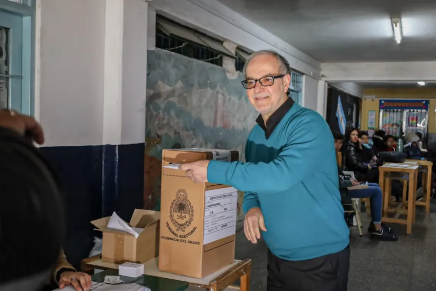 Carlos Martínez, precandidato a gobernador del partido Libres del Sur, emitió su voto alrededor de las 9:30 en la mesa 562, de la Escuela Primaria N° 834 "Independencia", ubicada en Jorge Washington N° 1523, del barrio Independencia de la ciudad de Resistencia.