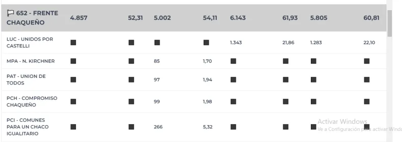 en la localidad de Juan José Castelli, donde hay un total de 33158 electores, el Frente Chaqueño ganó por una amplísima diferencia al conseguir 61,93% y sacar más de 30 puntos de diferencia a Juntos por el Cambio, que registra un 28,68% de los votos.