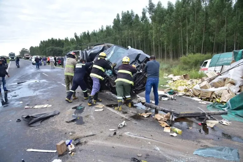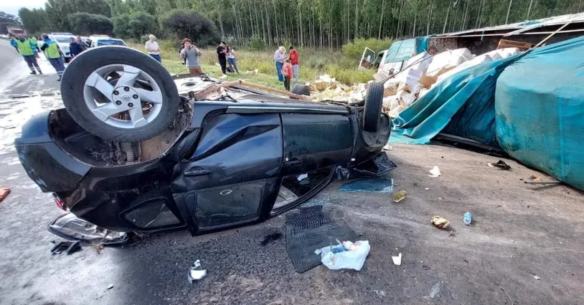Tras el accidente, la camioneta quedó completamente volcada y el camión que era conducido por un hombre de 34 años quedó de manera lateral. El hecho tuvo la intervención de la Comisaria de Margarita Belén.