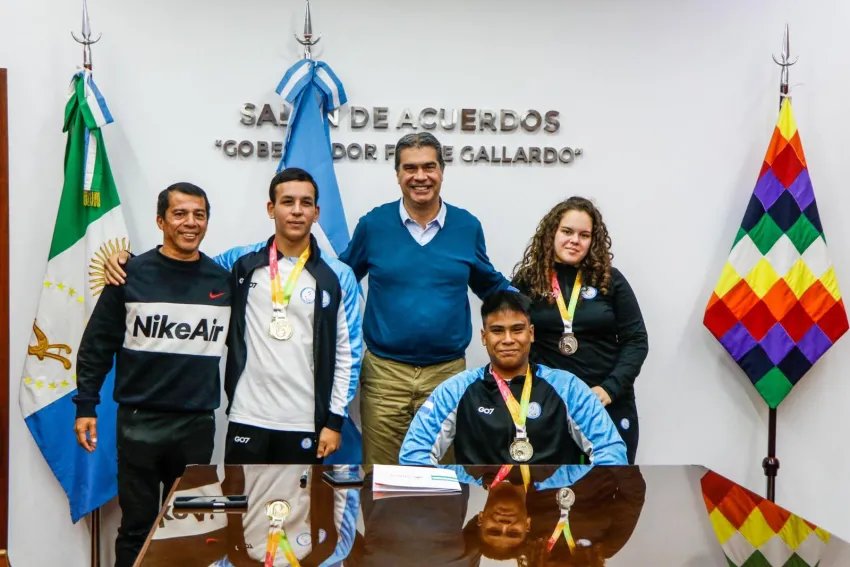 El gobernador Jorge Capitanich recibió esta mañana en su despacho a los deportistas chaqueños que obtuvieron importantes logros en los Juegos Parapanamericanos Juveniles desarrollados en Colombia a principios de mes. Lograron traer cinco medallas de oro y dos de plata en distintas categorías, lo que representa un orgullo nacional y provincial, colocando al deporte adaptado en lo más alto.