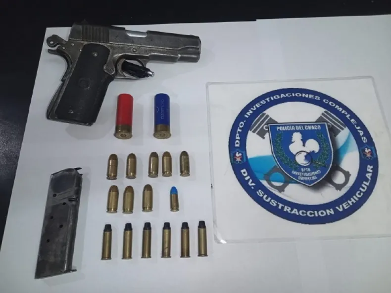 Asimismo, en la casa del Asentamiento 29 de Agosto los efectivos incautaron un arma de fuego calibre 45, y varios cartuchos de distintos calibres, de forma impostergable un aire comprimido adaptado para calibre 22, dos teléfonos celulares, una barreta, un arma blanca tipo faca, y una moto Zanella ZB.
