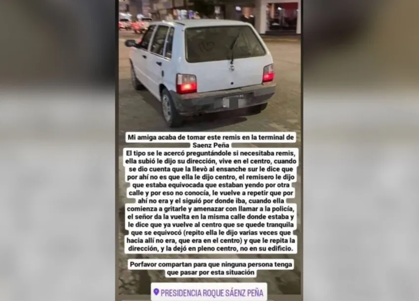 Estudiante escrachó en redes a un remisero por salirse del recorrido cuando la llevaba a su domicilio