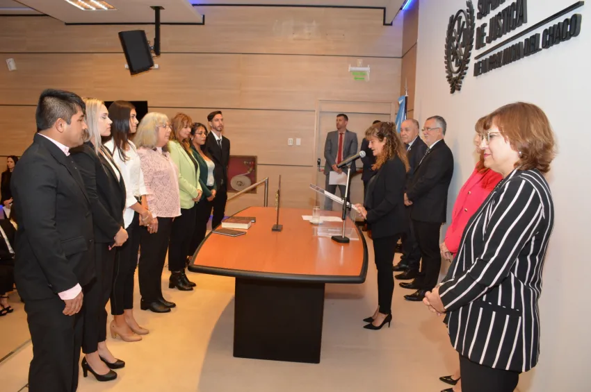 La ceremonia fue encabezada por la presidenta del STJ, Iride Isabel María Grillo, acompañada por sus pares Víctor del Rio y Emilia María Valle, el procurador general Jorge Canteros, la defensora general Alicia Alcalá, Ricardo Urturi, presidente del Consejo de Abogados de Resistencia, familiares y público en general.