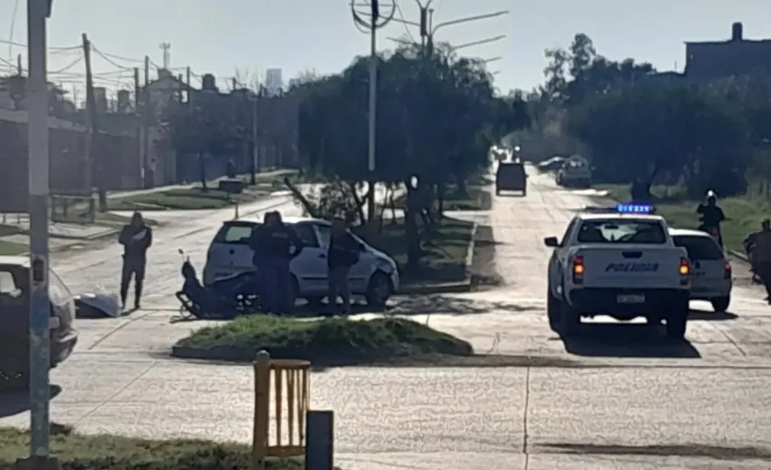 El impactante choque fue entre una motocicleta conducida por un hombre de 35 años y un auto por un joven de 18 . El hecho ocurrió este sábado por la mañana.