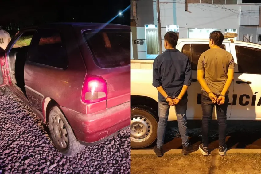 Cuando la Policía se dirigía al lugar, vieron a un auto con las características idénticas que circulaba en contramano, por lo que lo siguieron y demoraron a dos jóvenes en calle 0000 esquina 37 barrio San Martín.