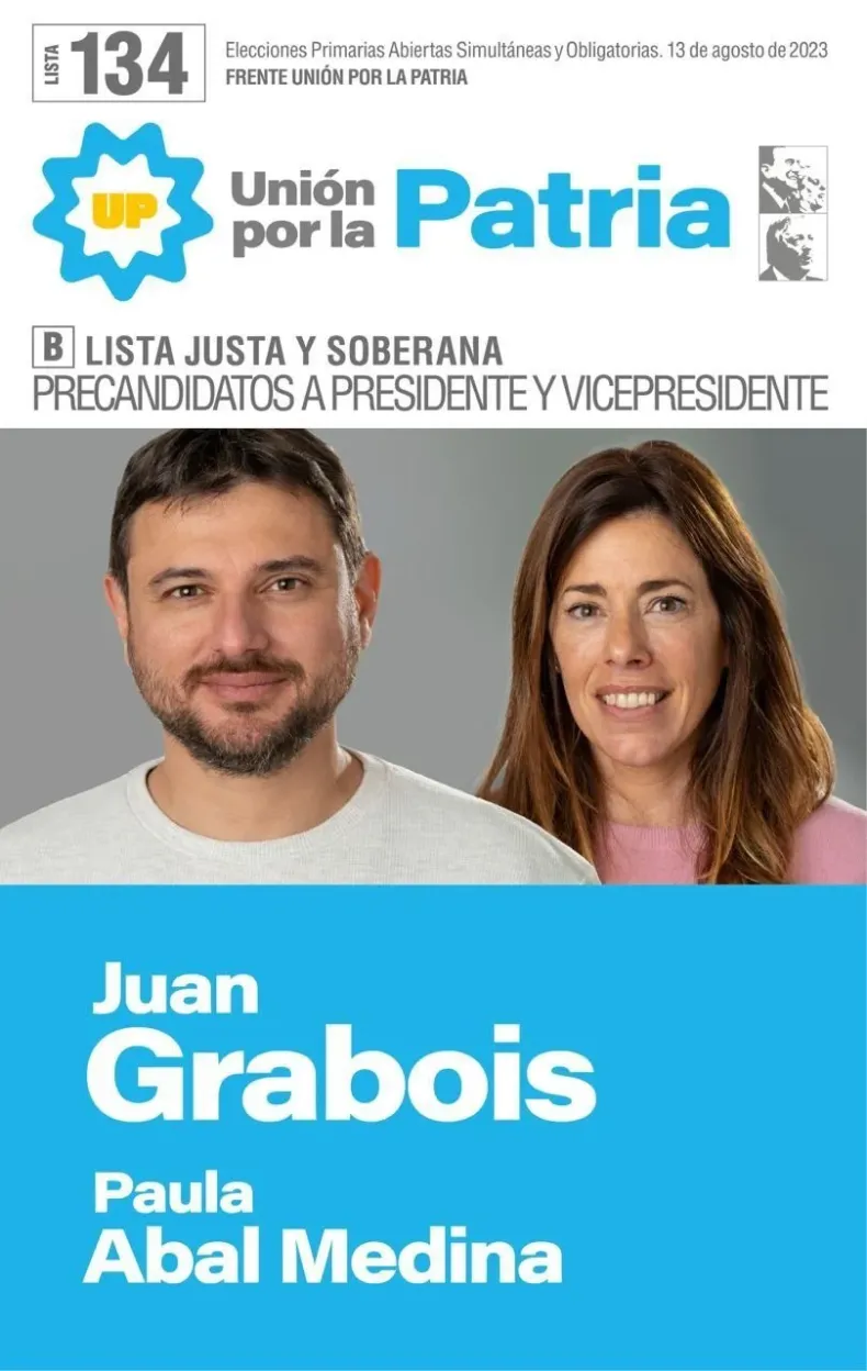 Hace dos días también habían hecho lo mismo Juan Grabois y Paula Abal Medina quienes competirán en la interna de Unión por la Patria con una lista corta, para presidente y vice. "Que se sepa: en @unionxlapatria hay opción. En las PASO, patria y corazón", escribió el piquetero en su cuenta de Twitter para anunciarlo. Grabois, además es fundador del Movimiento de Trabajadores Excluidos, de la Confederación de Trabajadores de la Economía Popular (UTEP) y del Frente Patria Grande. Ambos se sumaron a la elección a horas del cierre de listas luego de que se confirmara que "Wado" de Pedro -a quien apoyaban- no sería el candidato del oficialismo.