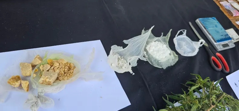 Al realizar la inspección los agentes lograron dar con tres envoltorios que contenían cocaína con un peso total de 22,3 gramos, una planta de cannabis sativa, es decir marihuana de unos 30 centímetros, una balanza, una tijera, y dentro de una bolsa hallaron unas sustancias tipo piedras las cuales al ser verificadas determinaron que se trataba de "Pedra", una droga que sería nueva en la ciudad. Además, incautaron la suma de 227.370 pesos en efectivo.