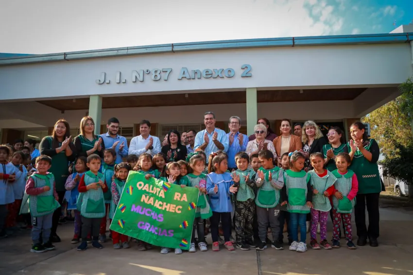 El gobernador Jorge Capitanich inauguró este jueves el edificio refaccionado y ampliado del Jardín de Infantes N° 87 de Colonia Aborigen. "Estamos muy contentos porque vemos la alegría también de alumnos, alumnas, docentes y padres", expresó el mandatario.
