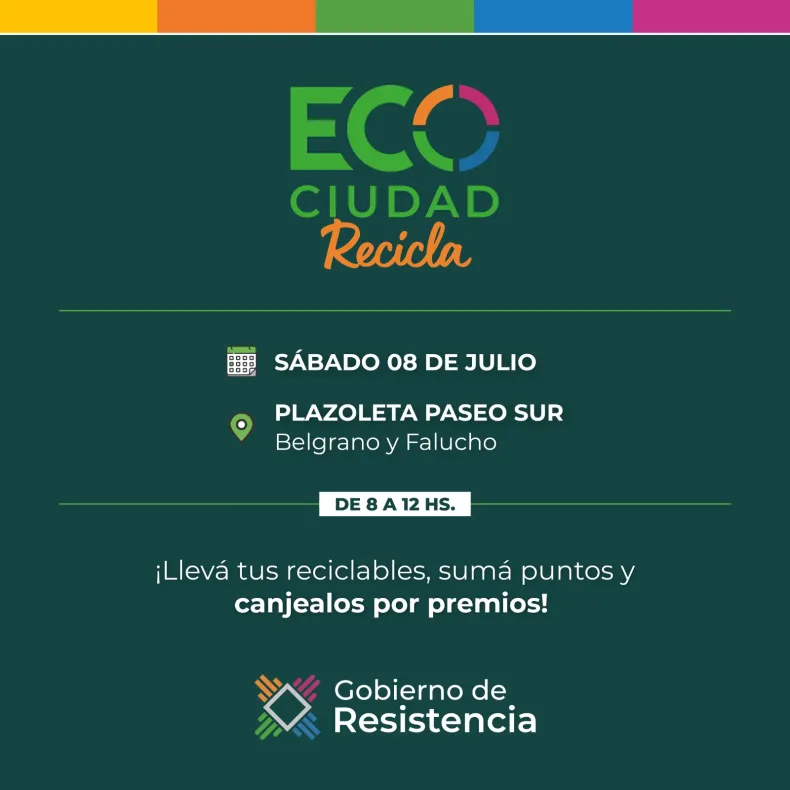 El programa municipal "Eco Ciudad Recicla" llegará este sábado 8 de julio a la Plazoleta Paseo Sur, con su vigésima primera jornada del año destinada al acopio de residuos reciclables.