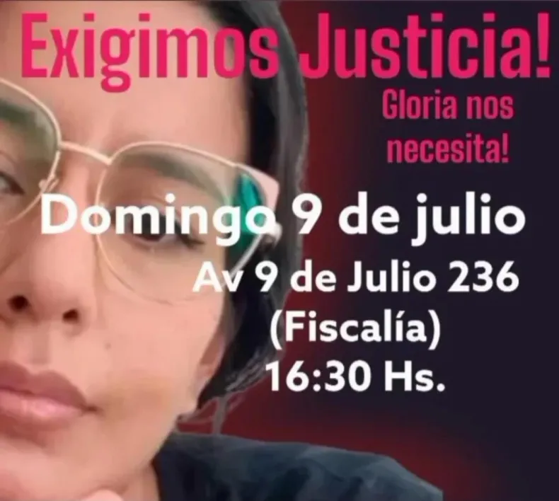 "Vamos a concentrarnos en la plaza para ir hasta el frente a la fiscalía, para que recuerden cuánta gente se opone a que les den domiciliaria", dijo Gloria en la convocatoria realizada a través de su cuenta de Instagram.