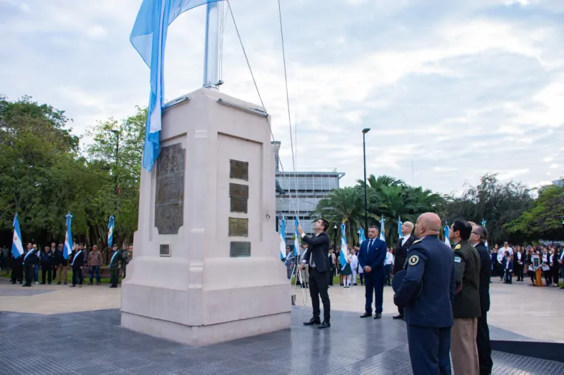La jornada patria comenzó con el izamiento de Banderas en la plaza San Martín y continuó con el izamiento de la Bandera Argentina en el nuevo mástil ubicado en la rotonda de rutas 16 y 95.