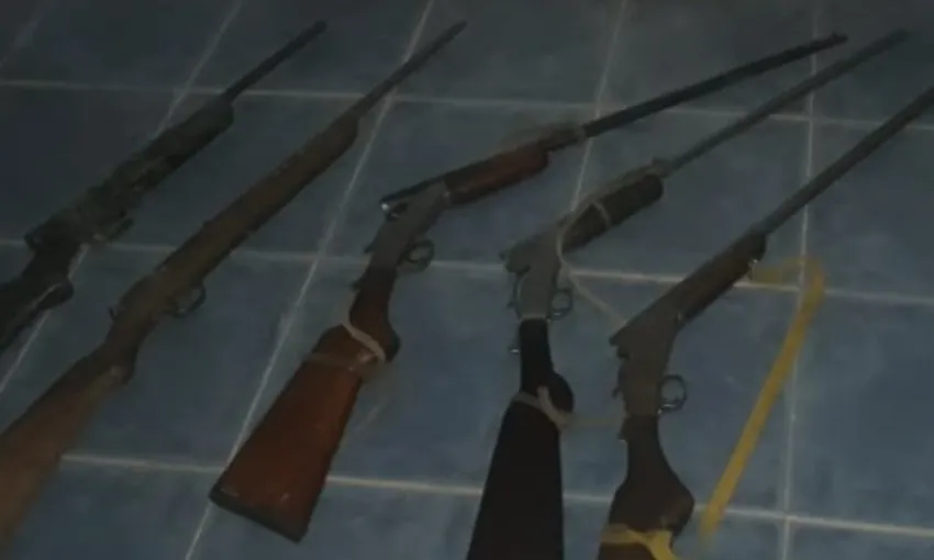 En la casa no lograron hallar al presunto agresor, sin embargo, los efectivos encontraron cinco armas de fuego en una de las habitaciones: una escopeta calibre 24, dos escopetas calibre 16 y dos carabinas calibre 22.
