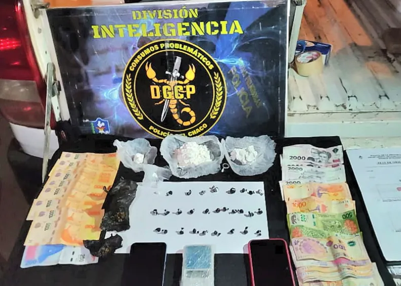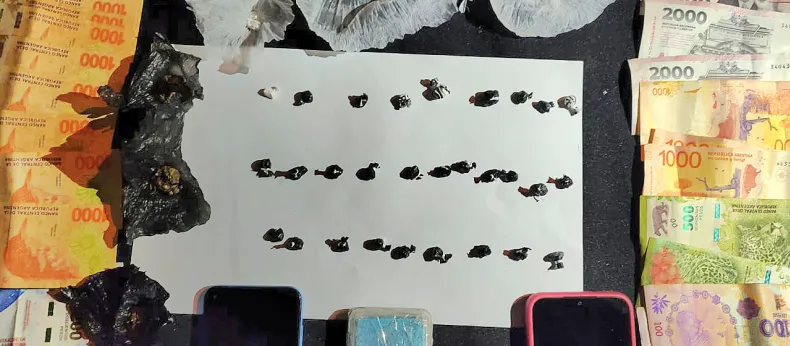 Allí se encontraron dos envoltorios y 33 dosis anudadas conteniendo cocaína, con un peso total de 171 gramos. Además, una balanza de precisión y una media de tela que en su interior contenía 3 bochitas con marihuana, con un peso de 4 gramos, $ 26.900 en efectivo y dos celulares.
