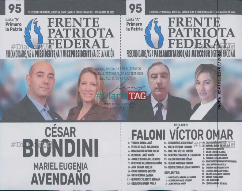 · Lista Patria Unida: César Biondini - Mariel Avendaño