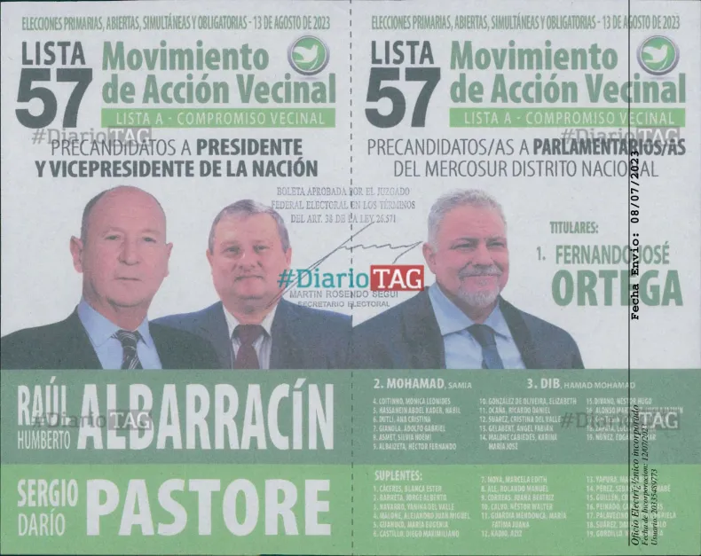· Lista Tres Banderas: Jorge Oliver - Ezequiel Ricardo Emilio Britos San Martín