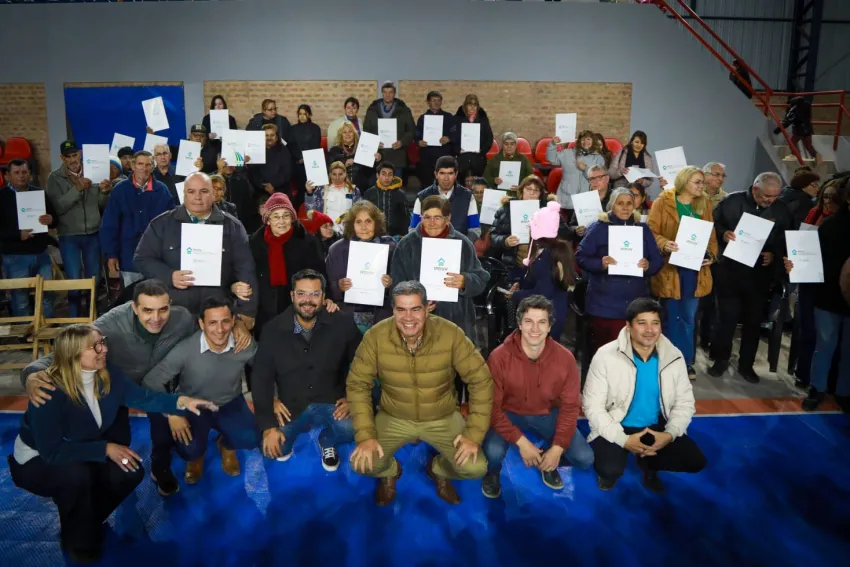 Acompañado por el titular del Instituto Provincial de Desarrollo Urbano y Viviendas (IPDUV), Diego Arévalo, el gobernador entregó 104 títulos de propiedad a familias propietarias que oportunamente recibieron y pagaron sus viviendas.