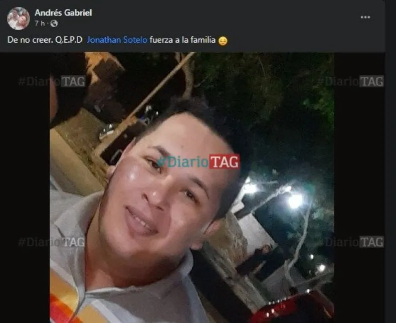 La víctima del violento altercados a tiros esta madrugada en Resistencia fue identificado como Jonathan Sotelo, de 28 años. Sus allegados utilizaron las redes sociales para despedirse del joven.