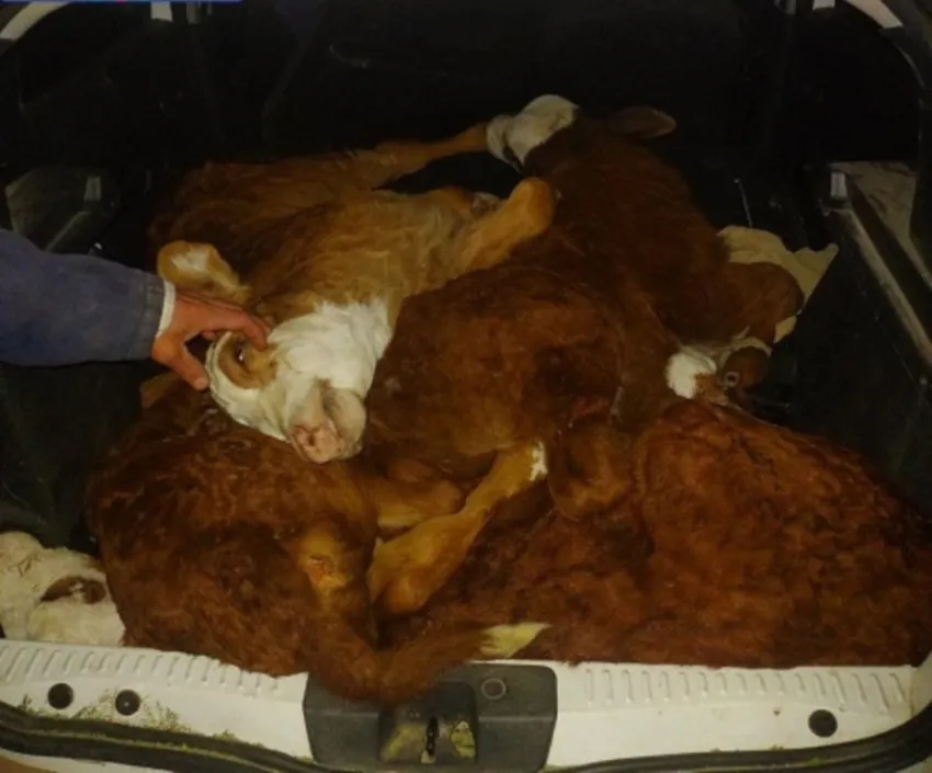 Llevaban cuatro terneros vivos en el baúl de un auto y terminaron detenidos