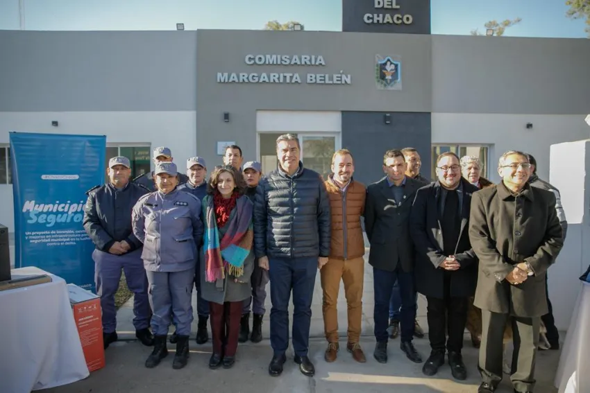El gobernador Jorge Capitanich y el intendente de Margarita Belén, Javier Martínez, inauguraron este martes ocho cuadras de pavimento y las obras de refacción y ampliación de la Comisaría de la localidad. Además, entregaron equipos de videovigilancia, uniformes y chalecos antibalas a los trabajadores policiales.