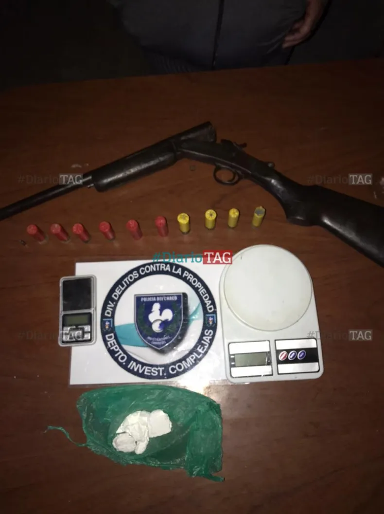 Además, se incautó un uniforme de la Policía del Chaco, 43 gramos de cocaína, un arma de fuego y cartuchos de diferentes calibres.