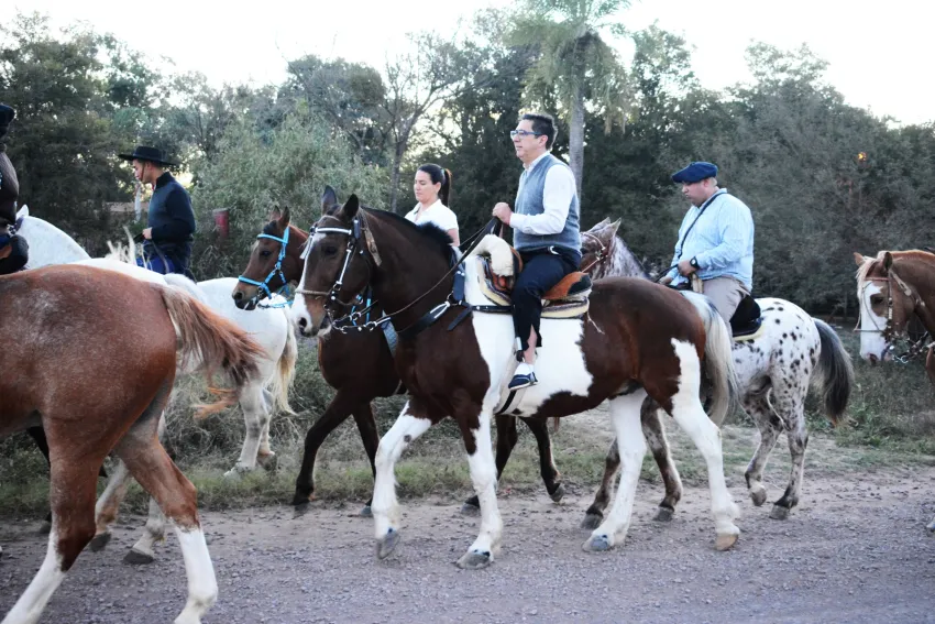 Fue acompañado por Gustavo Amann, subsecretario de Regulación y Fiscalización municipal, quien expresó: "Lo hacemos en agradecimiento por la salud, integrando parte de esta tradicional cabalgata".