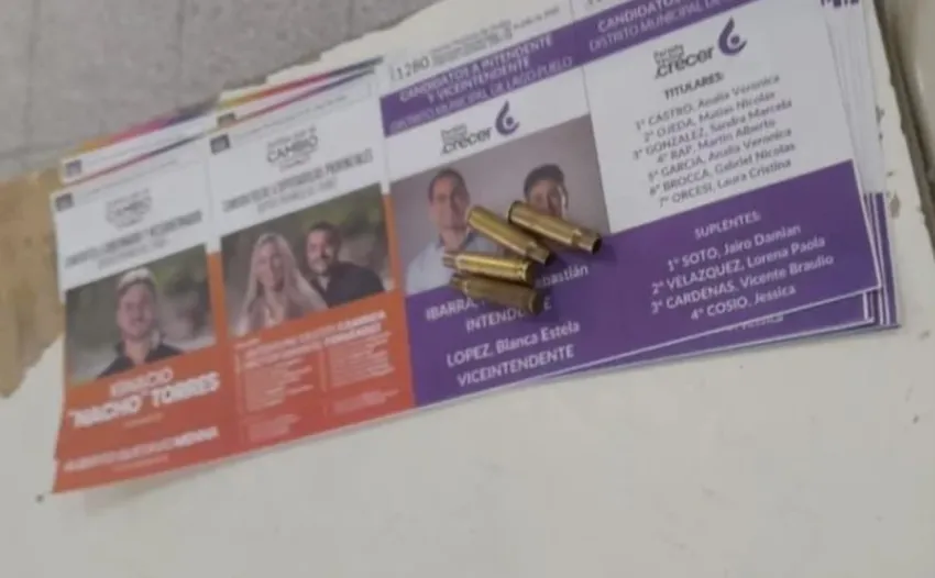 En ese contexto, se hallaron cuatro casquillos de bala sobre la boleta del partido Vecinal Crecer, encabezada por el opositor Ignacio Torres, en una escuela de Lago Puelo. Los cuatro casquillos de bala estaban sobre la imagen del candidato intendente Ramiro Ibarra, y de su vice, Blanca López, los postulantes de Juntos por el Cambio.