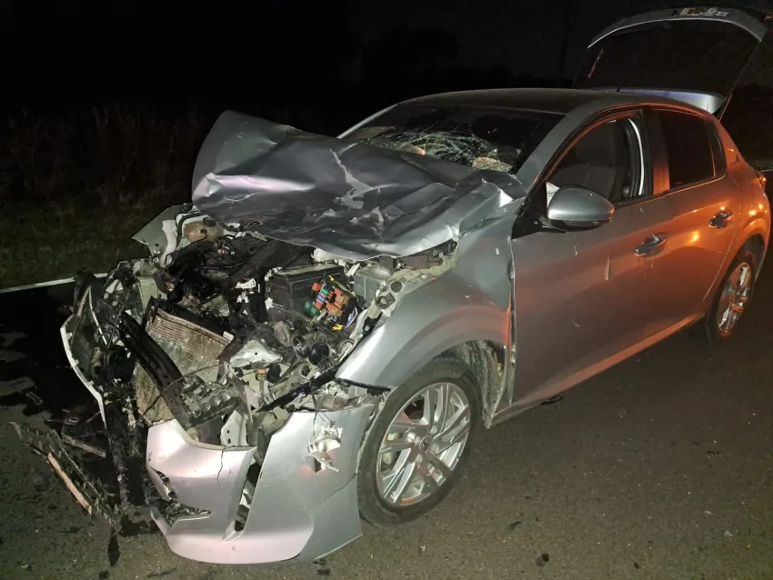 En la noche de este martes 1 de agosto, un joven de 26 años circulaba por la Ruta Provincial N°56, cuando su auto impactó contra un animal que estaba suelto en el lugar, el conductor no sufrió heridas, sin embargo, el automóvil fue destrozado.
