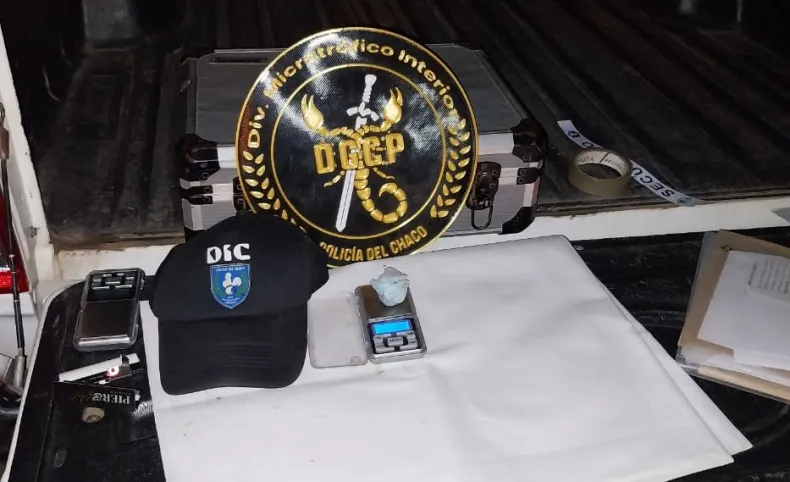 Asimismo, los sabuesos al requisar el interior de la camioneta hallaron un envoltorio con una sustancia verdosa. Al realizar la prueba de campo arrojó como resultado marihuana con un peso de 2,2 gramos. Además, incautaron una balanza digital y un cargador de 9 mm.