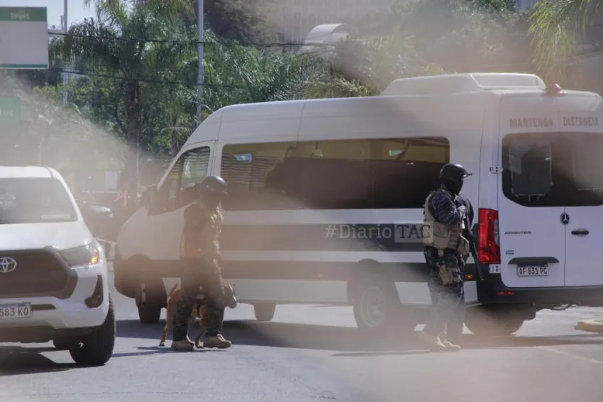 El acusado ingresó y salió del edificio en un móvil policial, en las dos ocasiones por la avenida 9 de Julio y Pellegrini la intersección en la que se encuentran los manifestantes exigiendo la libertad de su padre.
