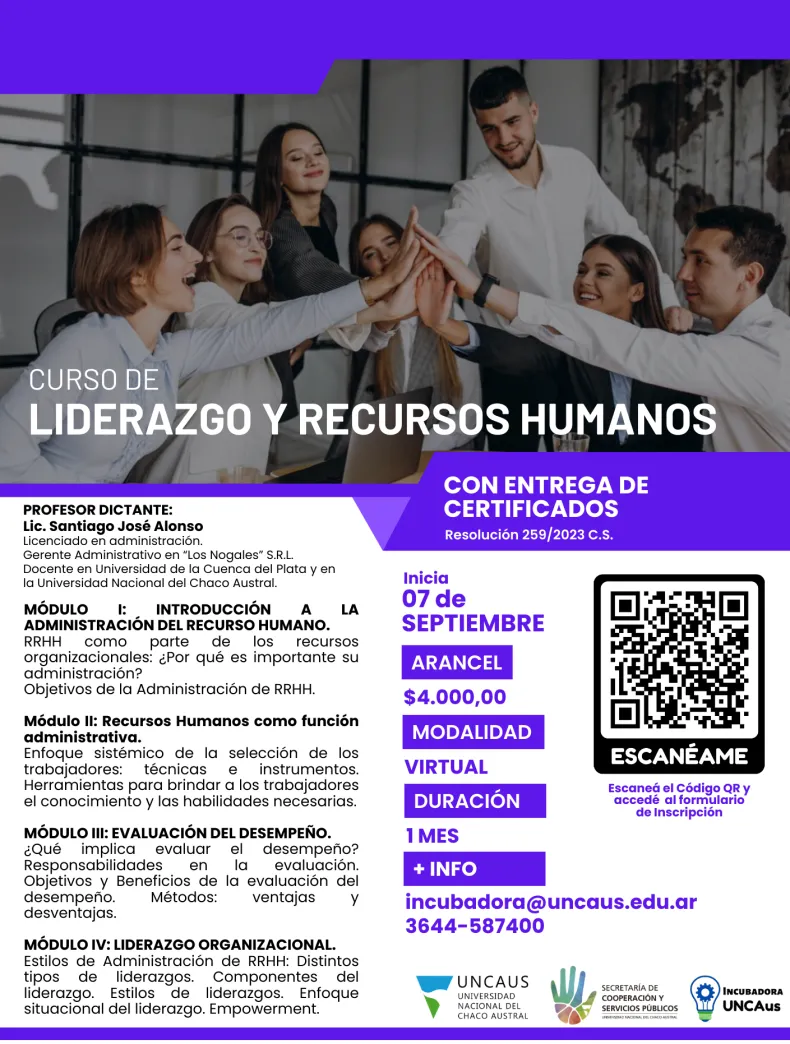 UNCAUS abrió inscripciones para el Curso de Liderazgo y Recursos Humanos que será en septiembre