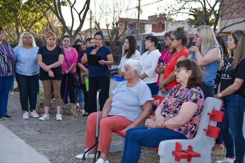 "Que este Banco Rojo nos recuerde que este lugar representa la sangre de una víctima de femicidio. Los hijos de Verónica hace muchos años están esperando para sacarse el apellido, el apellido del femicida, que es su padre, pero la Justicia les da la espalda una y otra vez. Empezaron cuando eran menores de edad, y ahora una ya es mayor de edad. Hasta ese derecho se le niega a los familiares", expresó Cuesta.