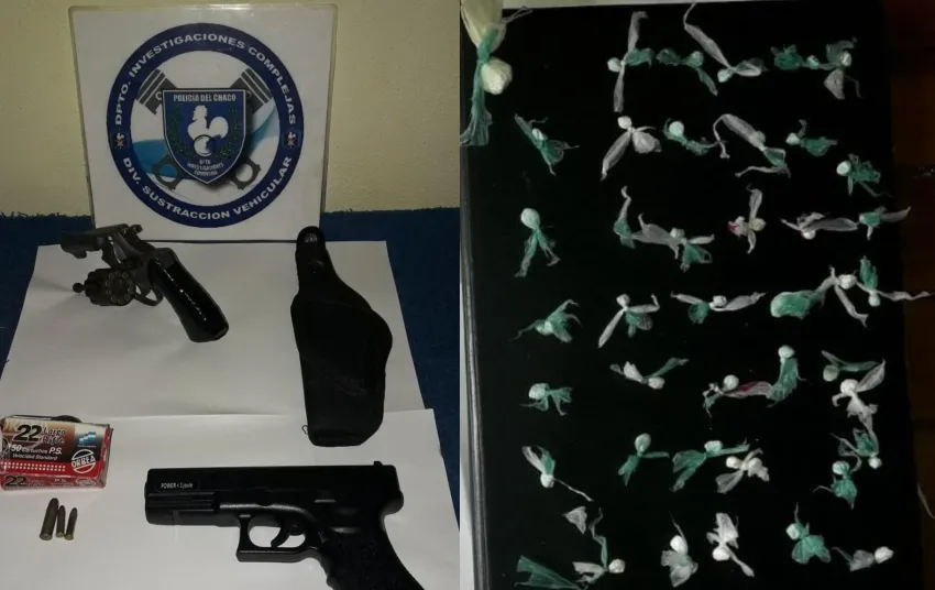 En la tarde del lunes 7, el cuerpo policial realizó tres allanamientos en simultáneos en la capital chaqueña. En uno de ellos, precisamente en la calle Navarro al 170, hallaron a un menor de 16 años que tenía entre sus pertenencias cocaína, armas de fuegos y cartuchos de balas, también procedieron a la detención de un sujeto de 23 años.