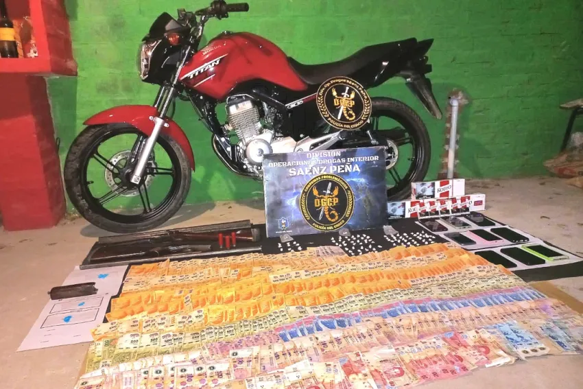 En el interior de la casa se realizaron importantes hallazgos: se detectaron 91 dosis anudadas de cocaína, con un peso de 27 gramos, dos celulares, una motocicleta marca Honda 125cc., y dinero en efectivo por la suma de $3 66.990.
