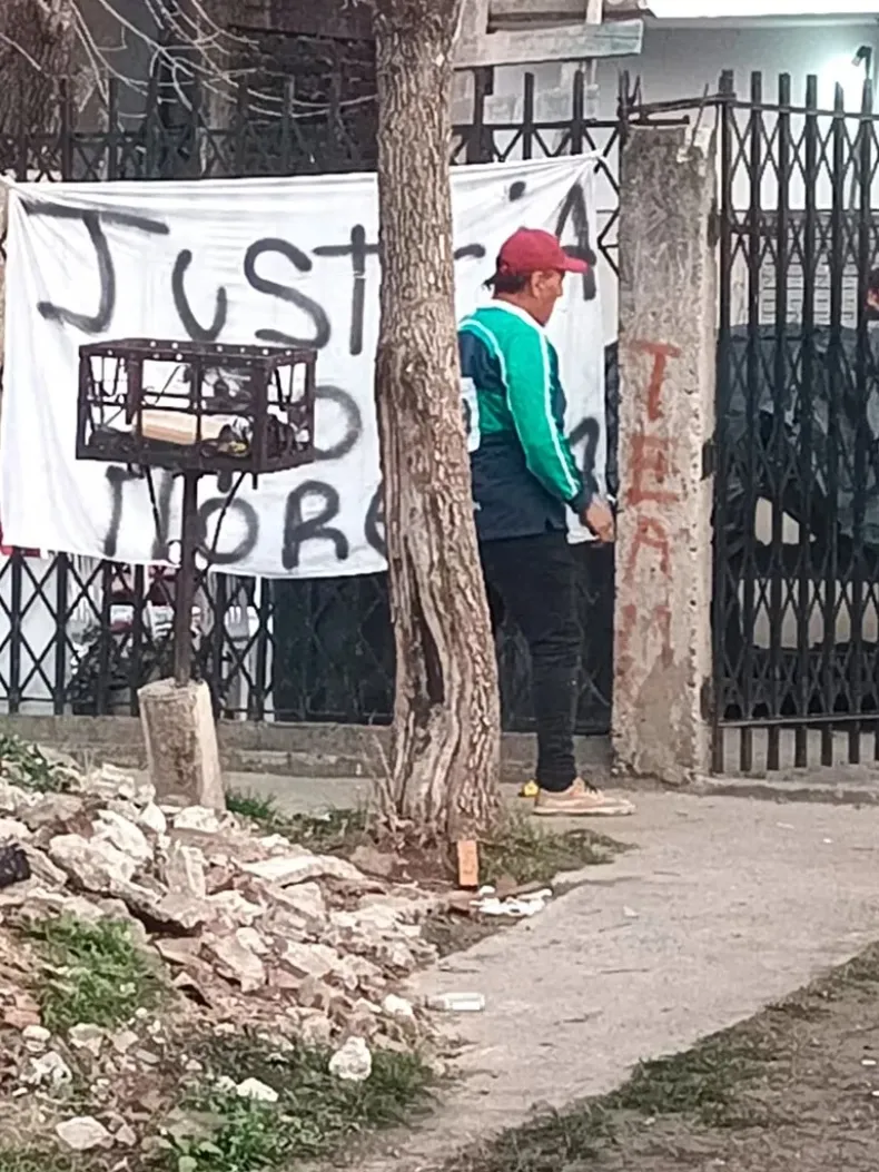 En el lugar se encuentran, Hugo su padre, Bruno, su hermano y el abuelo materno de la víctima. Un grupo de personas llegó con una bandera, una sábana escrita con aerosol que expresó lo sencillo: "Justicia por Morena".
