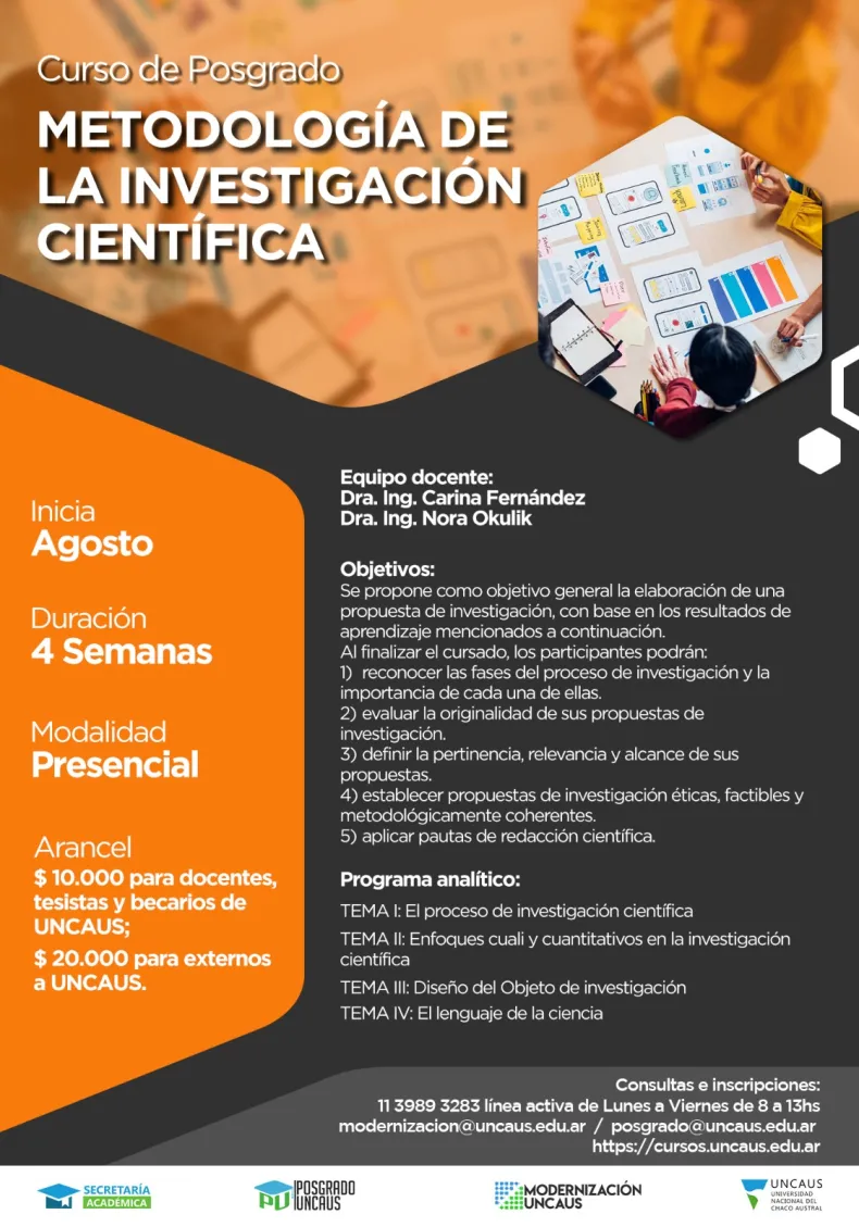 UNCAUS abrió inscripciones para el Curso: Metodología de la Investigación Científica