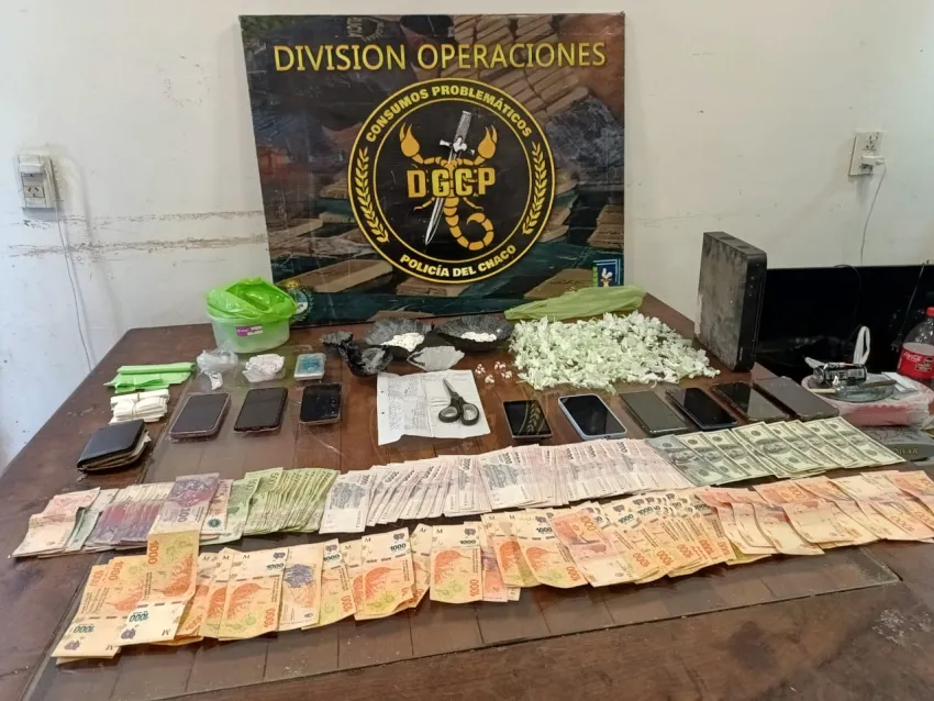 También en el domicilio, incautaron mil dólares en efectivo y la suma total de 219.900 pesos argentinos. Se realizó el secuestro de 3 celulares, una balanza digital, un equipo de filmación, y otros elementos que eran utilizados para la comercialización de estos estupefacientes como una tijera y recortes de polietileno.