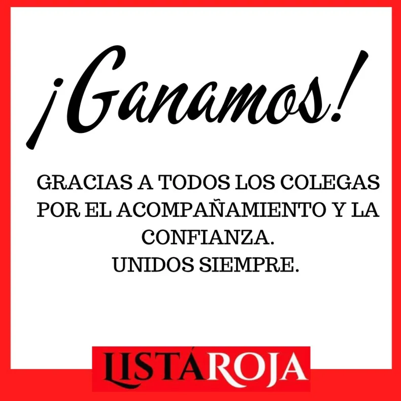 Desde la lista Roja escribieron: "¡Ganamos! Gracias a todos los colegas por el acompañamiento y la confianza. Unidos Siempre".