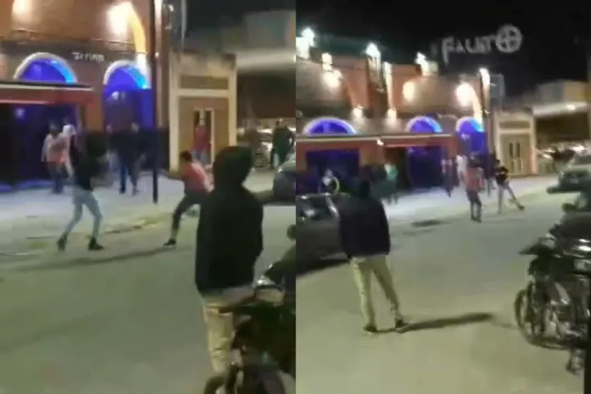 En las imágenes difundidas, se puede ver como dos peleas a golpes ocurren en simultáneo afuera del boliche, a pocos metros de distancia la una de la otra. Los presentes avisaron a la Policía.