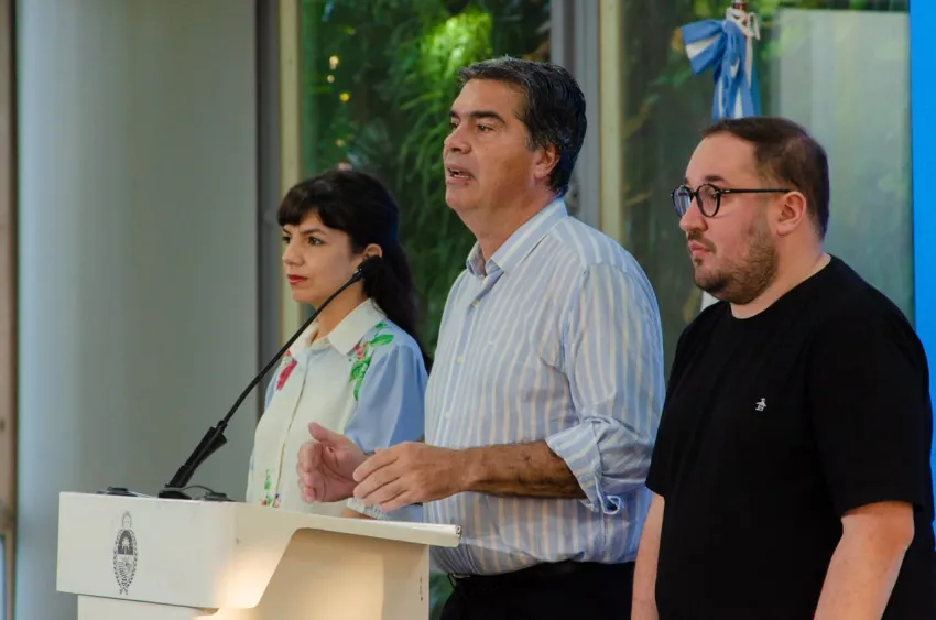El gobernador, tras los anuncios, estaba acompañado por la vicegobernadora de la provincia, Analía Rach Quiroga y junto al Ministro de Planificación, Economía e Infraestructura, Santiago Pérez Pons.