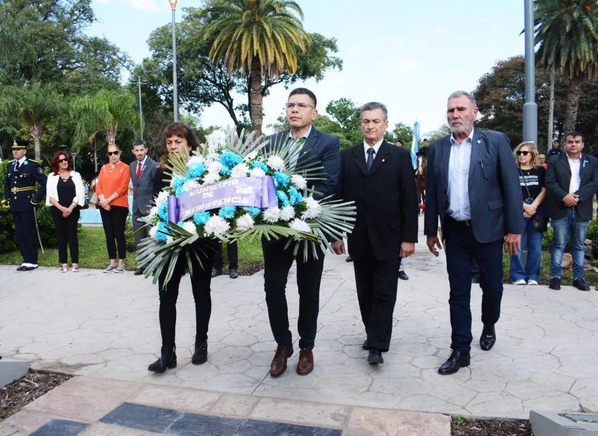 Integrantes del Regimiento de Granaderos a Caballo y de Infantería Nº 1 Patricios, formaron parte de esta ceremonia que tuvo su epicentro en la Plaza 25 de Mayo, donde se erige el monumento ecuestre a San Martín, con ofrendas florales y con el acompañamiento de la Banda Municipal de Música "Luis Omobono Gusberti", se entonaron las estrofas del Himno Nacional Argentino y la Marcha de San Lorenzo. Previamente, en el Mástil Mayor se izó la Bandera Argentina.
