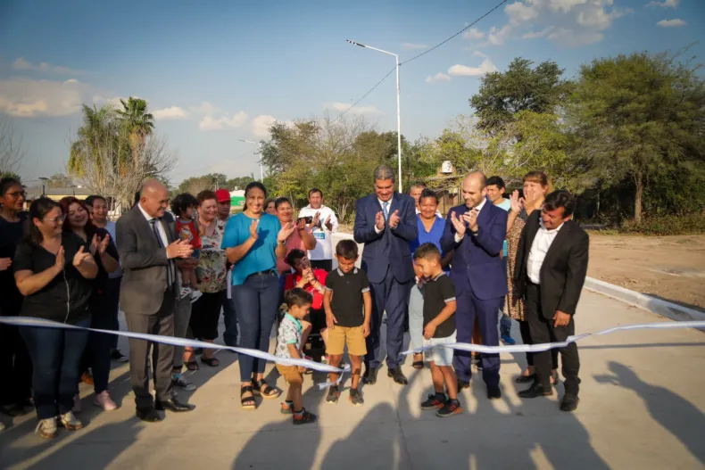 Con estas nuevas cuadras inauguradas "se pavimenta más del 90% de todo el pueblo, lo que es un modelo espectacular", dijo Capitanich, acompañado por la intendenta local, Carina Mittoire.