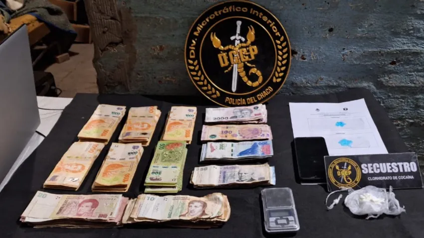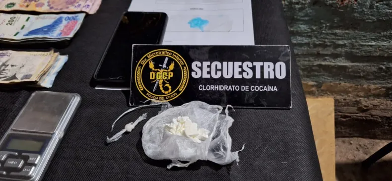 Posteriormente, el operativo se extendió a otro domicilio por calle Suipacha del mismo barrio. En este lugar, se detuvo a una mujer de 25 años y se realizó el secuestro de un envoltorio de nylon transparente con 8,3 gramos de cocaína, un teléfono celular, una balanza de precisión en funcionamiento, la suma de $ 158.140 en efectivo y un arma de fuego tipo escopeta con culata de madera, adaptada para calibre 16 milímetros, acompañada por 6 cartuchos del mismo calibre.