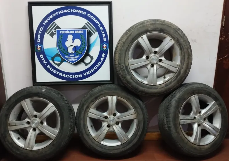 Los efectivos policiales se dirigieron hasta el lugar, que sería un descampado y a unos pocos metros de la calzada, arbustos y tapadas por unas ramas se logró dar con las cuatro ruedas, rodado 14, con llantas de aleación, siendo 2 cubiertas FATE O y 2 cubiertas FASTWAY dimensiones 175/65-14, similar como la sustraída en el Fiat Palio, color rojo.