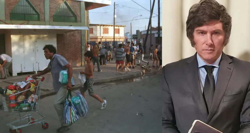 Es asi, que el Milei puso en su cuenta de Twitter: "LAS DOS CARAS DE LA MISMA MONEDA" y siguió: "Es trágico volver a ver luego de 20 años las mismas imágenes de saqueos que veíamos en el 2001. Pobreza y saqueos son dos caras de la misma moneda".