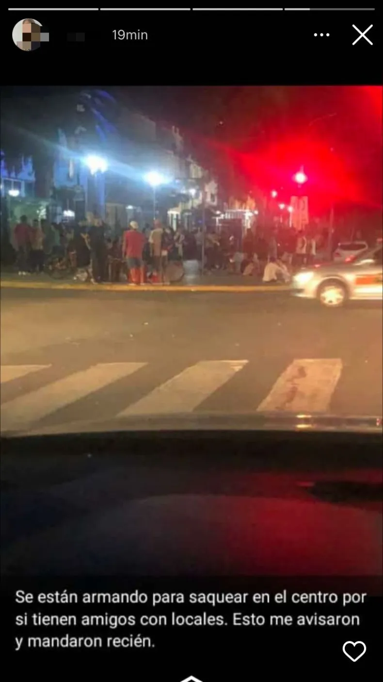 "Alerta: información importante" comenzó el ejecutivo en el comunicado: "No se registró ningún caso de saqueo ni acciones organizadas de esta índole". Esta aclaración por parte de las autoridades surgió luego de que en redes sociales circulara, no sólo el rumor sino también fotografías de personas reunidas en grupo y los usuarios advirtieron que eran organizaciones que pretendían saquear el centro de la ciudad.