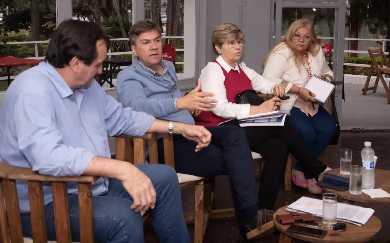 Leandro Zdero, candidato a Gobernador de Juntos por el Cambio, junto a Sofía Naidenoff y a los candidatos a diputados provinciales Carmen Britto e Iván Gÿoker mantuvieron una reunión con docentes de Escuelas Públicas de Gestión Privada, para escuchar sus demandas y dar a conocer sus propuestas al sector.